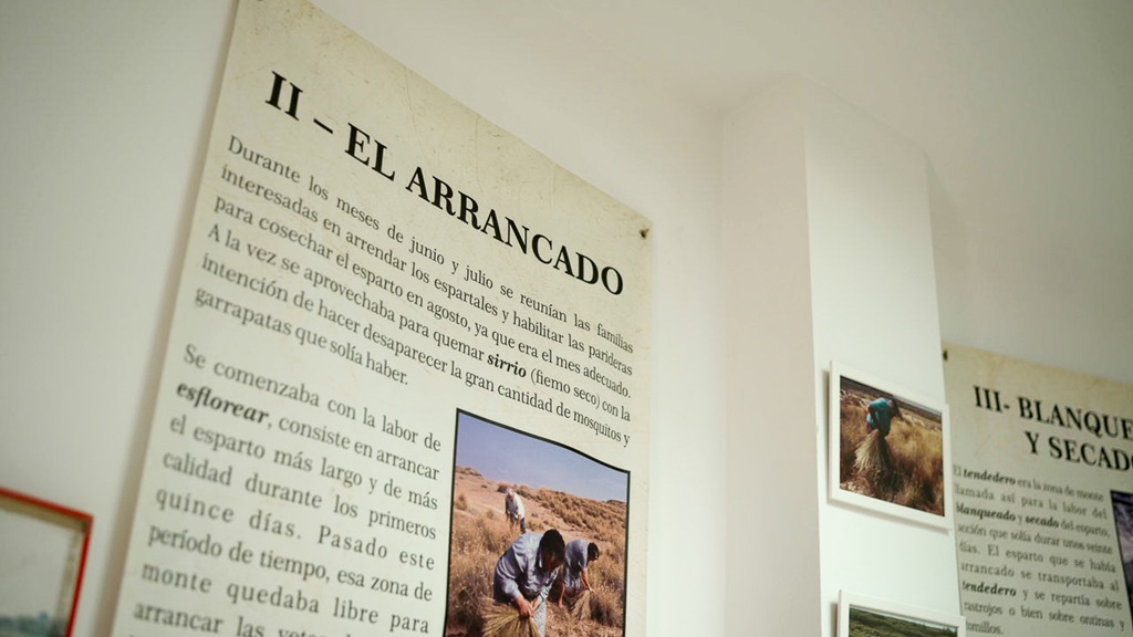 El espacio destinado al Museo del esparto de Lalueza, en los bajos del edificio del Ayuntamiento, tiene por objeto poner en valor artesanal la comprensión y riqueza del pasado.